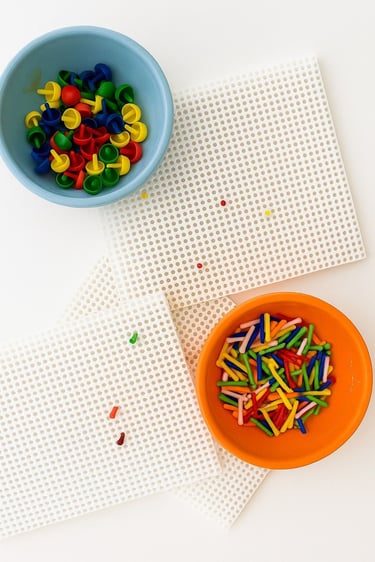 Pour les plus petits, nous mettrons à disposition des mobiles, petits jouets, jeux d’encastrement, hochets, anneaux de dentitions…