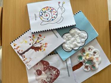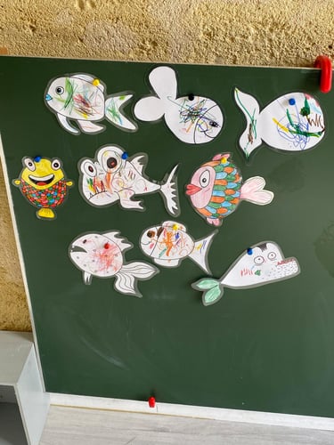 Les réalisations des enfants seront épinglées dans la Maison et feront office de décorations avant d’être remises aux parents dans le cahier d’activités.